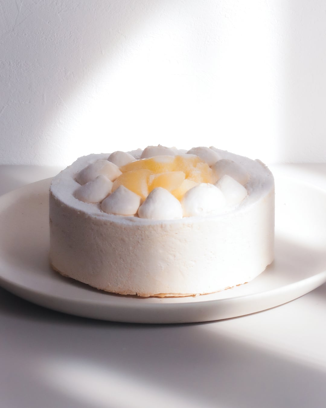 ふわっと香る紅茶のムースに、みずみずしい白桃の果肉をたっぷりと使用。ひとくち頬張れば、じゅわっと果汁が広がり、やさしい甘さと上品な紅茶の香りがとろけます。