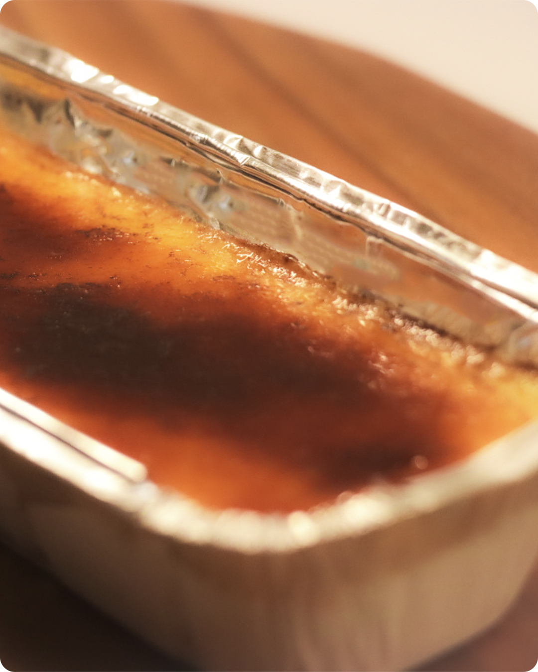 香ばしいキャラメルの“パリッ”とした一口のあとに、 とろ〜り濃厚なカスタードが舌の上でふんわりとろける。 ミルクの甘みとほろ苦さが溶け合う、リッチでとろけるひとくち時間。